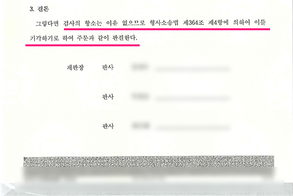 기타 여러 가지 사유로 검사가 항소를 하였지만 납득할 수 없기에 검사의 항소를 기각하여 달라는 답변서를 제출하였습니다.